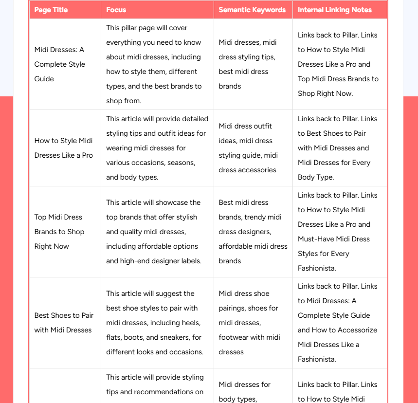 ✓  Internal linking recommendations: Receive AI powered guidance on how to internally link between pillar pages and supporting content.